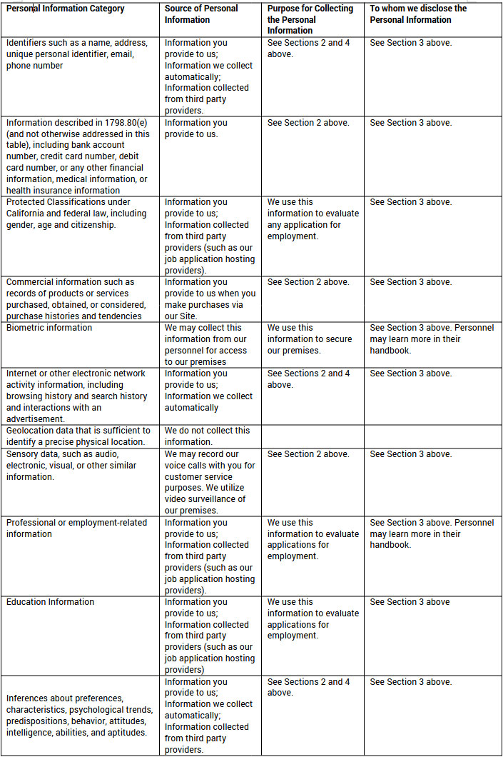 California Consumer Privacy Act Disclosures. Under the California Consumer Privacy Act, as amended by the California Privacy Rights Act effective January 1, 2023 (“CCPA/CPRA”), California residents have the right to request: